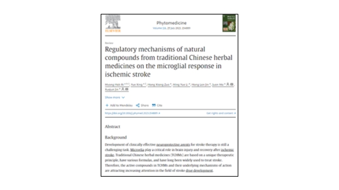 Myong Hak Ri, Yue Xing, Hong Xiang Zuo, Ming Yue Li, Hong Lan Jin, Juan Ma, Xuejun Jin, Regulatory mechanisms of natural compounds from traditional Chinese herbal medicines on the microglial response in ischemic stroke, Phytomedicine, Volume 116, 2023